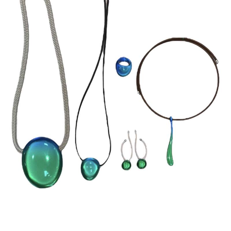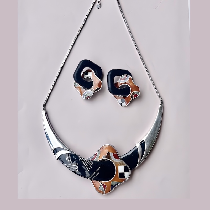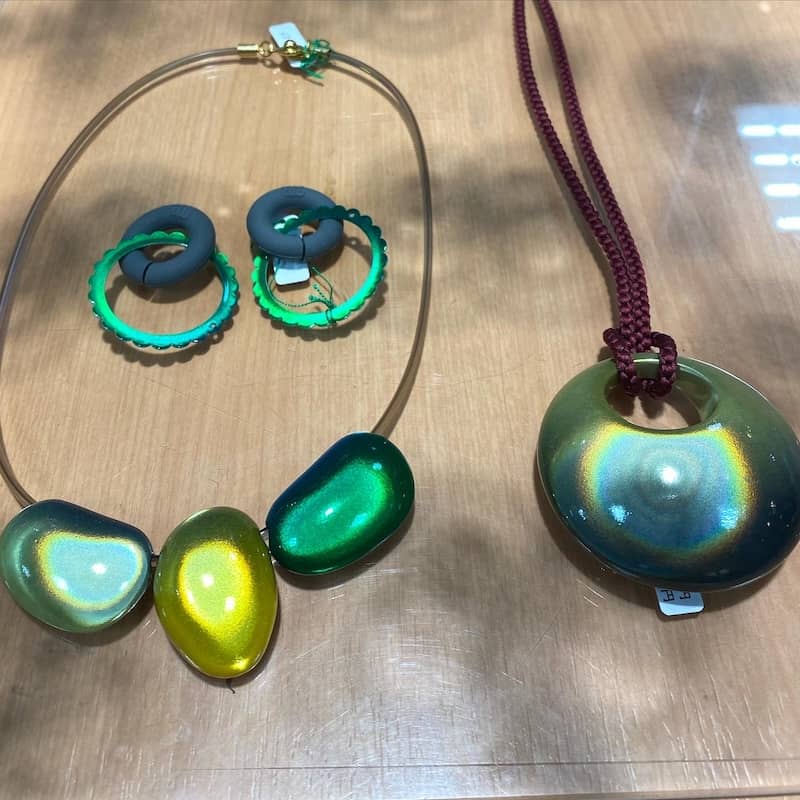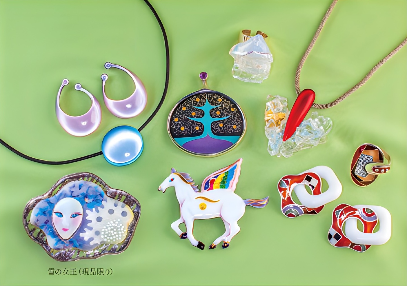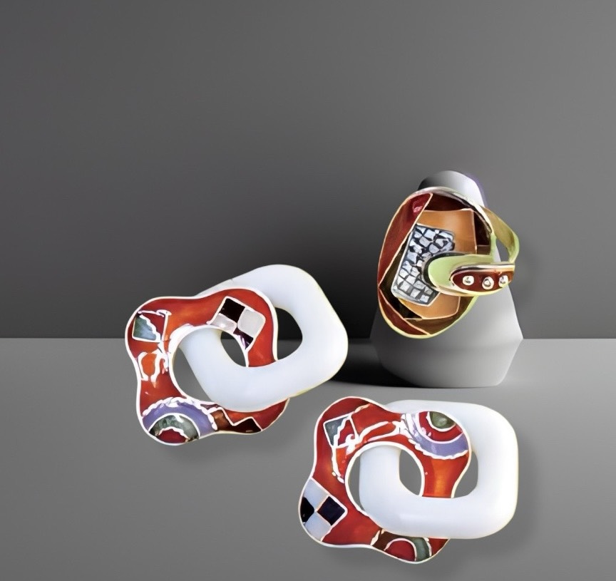 なめらかな彫金フォルムと七宝の色彩が品よく輝くモダンアクセサリー